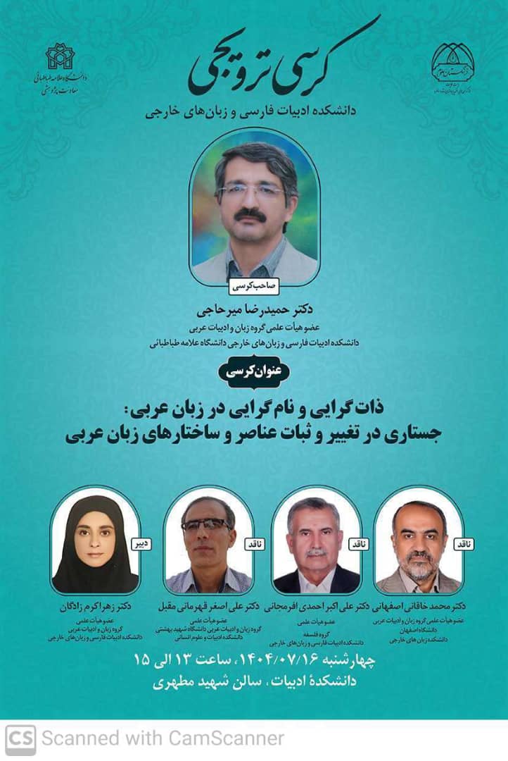 کرسی ترویجی ذات گرایی و نام گرایی در زبان عربی:جستاری در تغییر و ثبات عناصر و ساختارهای زبان عربی