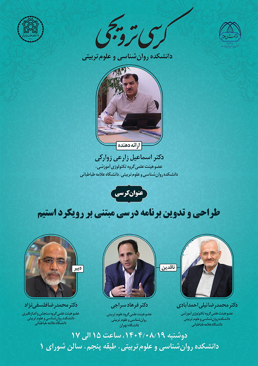 کرسی ترویجی، طراحی و تدوین برنامه درسی مبتنی بر رویکرد استیم تاریخ : ۱۹ آبان ۱۴۰۴ محل برگزاری : دانشکده روانشناسی و علوم تربیتی